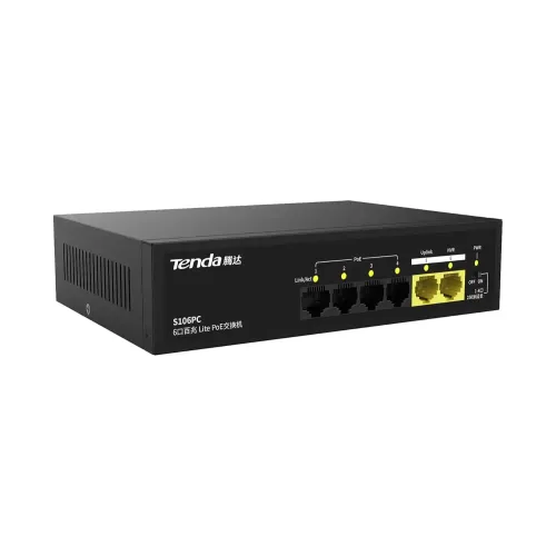 Model: S106PC 4*10/100 Base-TX Ethernet Ports(Data/Power) 2*10/100 Base-TX Ethernet Port(Data) Po...
