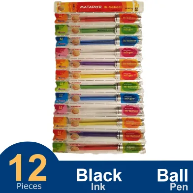 Matador Hi-School Ball Pen Black Ink 12 Pcs Brand: Matador Group Category: Ball Pen Country of Or...